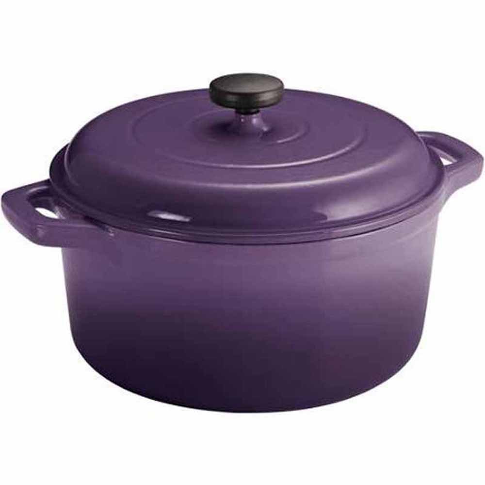 Dutch Oven Cast Iron 6.5 Qt Enameled Round True Classic All Cooking Surfaces Gas Electric Induction Open Fire (Purple) is best for youColor:Purple Tramontina brings back a genuine classic with this 6.5 Qt Enameled Round Cast Iron Dutch Oven. This Dutch stove is excellent for slow cooked dinners, braising meats, making soups, heating, searing and a great deal more. It goes from broiler or stove straight to the table. Its cast iron composition holds warmth to keep foods warm to serve. This enameled round dutch oven is perfect with gas, electric, fired and induction cook tops. A dark phenolic handle is accessible for holding. This Dutch oven self-basting condensation ridges on its cover. It is oven safe up to 400 degrees Fahrenheit or 204 degrees Celsius. The off-white porcelain enamel inside completion is solid, scratch-safe and will mix in with your kitchen stylistic theme, as it is accessible in an assortment of outside hues.