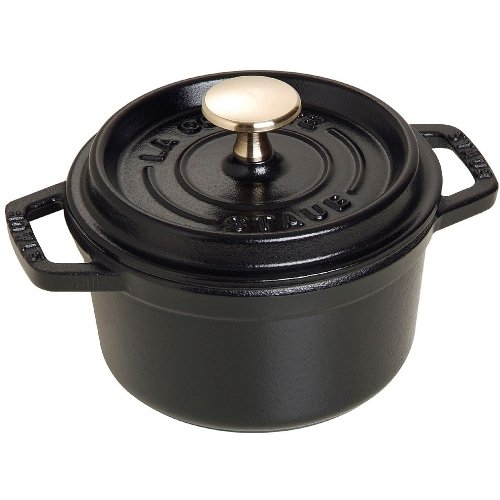 Staub 1101425 Round Cocotte Oven, 0.75 quart, Matte Black is best for youMake delicious small dishes in this classic cocotte from Staub. Fabricated from cast iron, it is durable and strong. The heavy weight, tight fitting lid retains moisture and features a nickel steel knob, and the smooth enamel bottom works on all stovetops and is oven safe up to 500 degrees Fahrenheit. A timeless cookware piece that has been perfected and requires no seasoning, it features self basing spikes that offer continuous, natural basting while cooking, turning out a superior final product. Perfect for soups, stews, casseroles, and many more classic one pot meals, it moves beautifully from stovetop to oven to table, and makes a beautiful centerpiece presentation while serving.