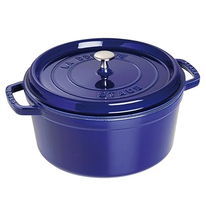 Staub 1102291 Round Cocotte Oven, 2.75 quart, Dark Blue is best for youColor:Dark Blue Make delicious pot roast or soup in this classic cocotte from Staub. Fabricated from cast iron, it is durable and strong. The heavy weight, tight fitting lid retains moisture and features a nickel steel knob. The smooth enamel bottom works on all stovetops and is oven safe up to 500 degrees Fahrenheit. A timeless cookware piece that has been perfected and requires no seasoning, it features self basing spikes that offer continuous, natural basting while cooking, turning out a superior final product.