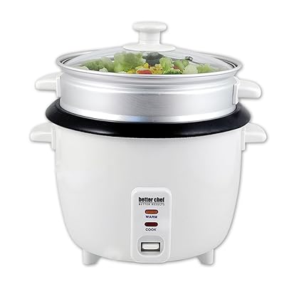 Better Chef 5-Cup Rice Cooker w/ Food Steamer is best for you* Makes up to 10 cups of cooked rice* Includes food steamer attachment. Great for healthy steamed vegetable, fish, and more* Just add rice and water, then let the rice cooker do the rest.* Keeps rice warm for hours* Removable non-stick bowl for easy cleanup* Rice paddle and measuring cup included* Cool touch exterior and cool touch handles keep the heat off* Cooks all types of rice including long grain and wild rice