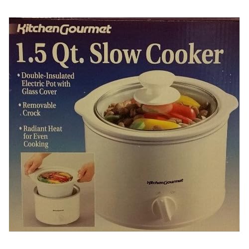 Kitchen Gourmet 1.5 Quart Slow Cooker is best for youDouble-insulated Electric Pot with Glass Cover with Removable Crock. Uses Radiant Heat for Even Cooking.