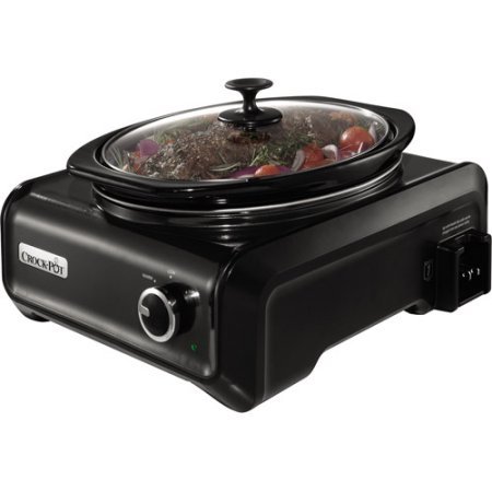 the Crock-Pot Hook Up Oval 3.5-Quart Connectable Entertaining System / Color: Metallic Black Keeps food safe on the go with hinged locking lids and carrying handles. With these features, there’s no need to repack food in other containers, making travel a breeze.You can customize your cooking time and temperature by setting the timer anywhere between 30 minutes and 20 hours on the “High,” “Low,” or “Warm” settings. The digital timer counts down the remaining time so you can coordinate side dish preparation and have a complete meal ready when you are. If you’re not around when time runs out, this countdown expert will automatically shift to “Warm,” maintaining temperature and flavor. The digital timer will count up the time that it has been operating on “Warm” for up to 6 hours, simplifying mealtime so you don’t have to keep track. The Crock-Pot Cook & Carry Slow Cooker is just as at home in the kitchen as it is on the road. With a stylish, stainless finish and convenient lid locks that nestle neatly in with the lid, your countertop is sure to look sleek and clean. The stoneware transfers easily from the stainless steel frame to the table or refrigerator.