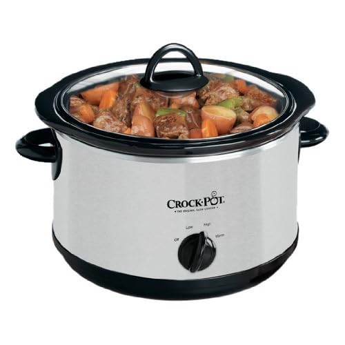 Crock-Pot SCR503SP 5-Quart Smudgeproof Round Manual Slow Cooker with Dipper, Silver by Crock-Pot is best for you5-quart round stoneware with a smudge-proof finish;High, low and warm settings are perfect for making chilis, stews, sauces and more;Dishwasher safe stoneware and lid;Bonus Little Dipper Warmer is perfect for warming dips and sauces