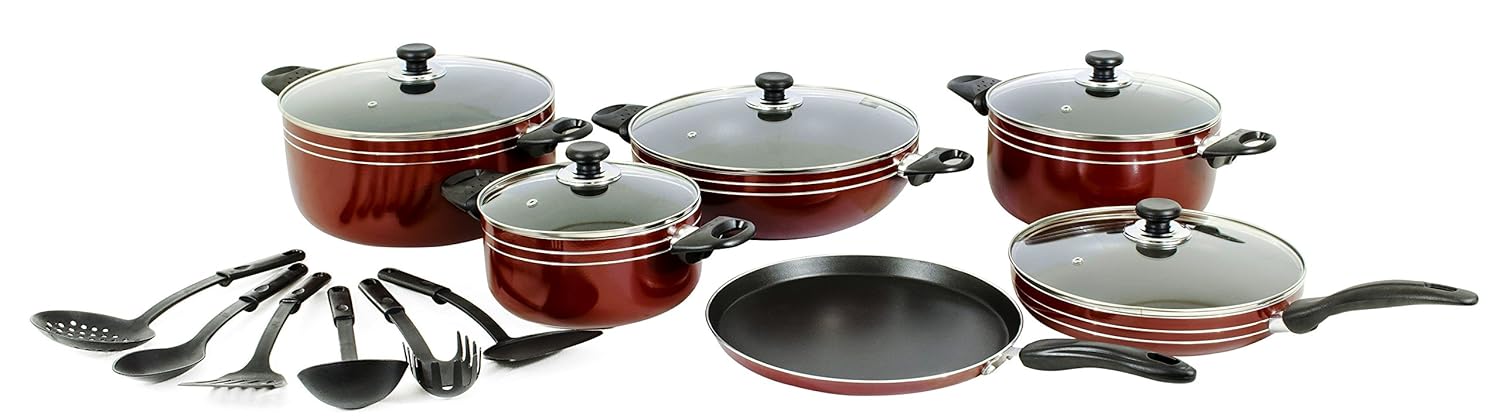 • The Major-Q 17 Piece Nonstick Pots and Pans Kitchen Cookware Gift Set, Red is a
