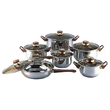 • The 18/10 STAINLESS STEEL Gourmet Chef 12-piece Covered Cookware Set Pots and Pans is a