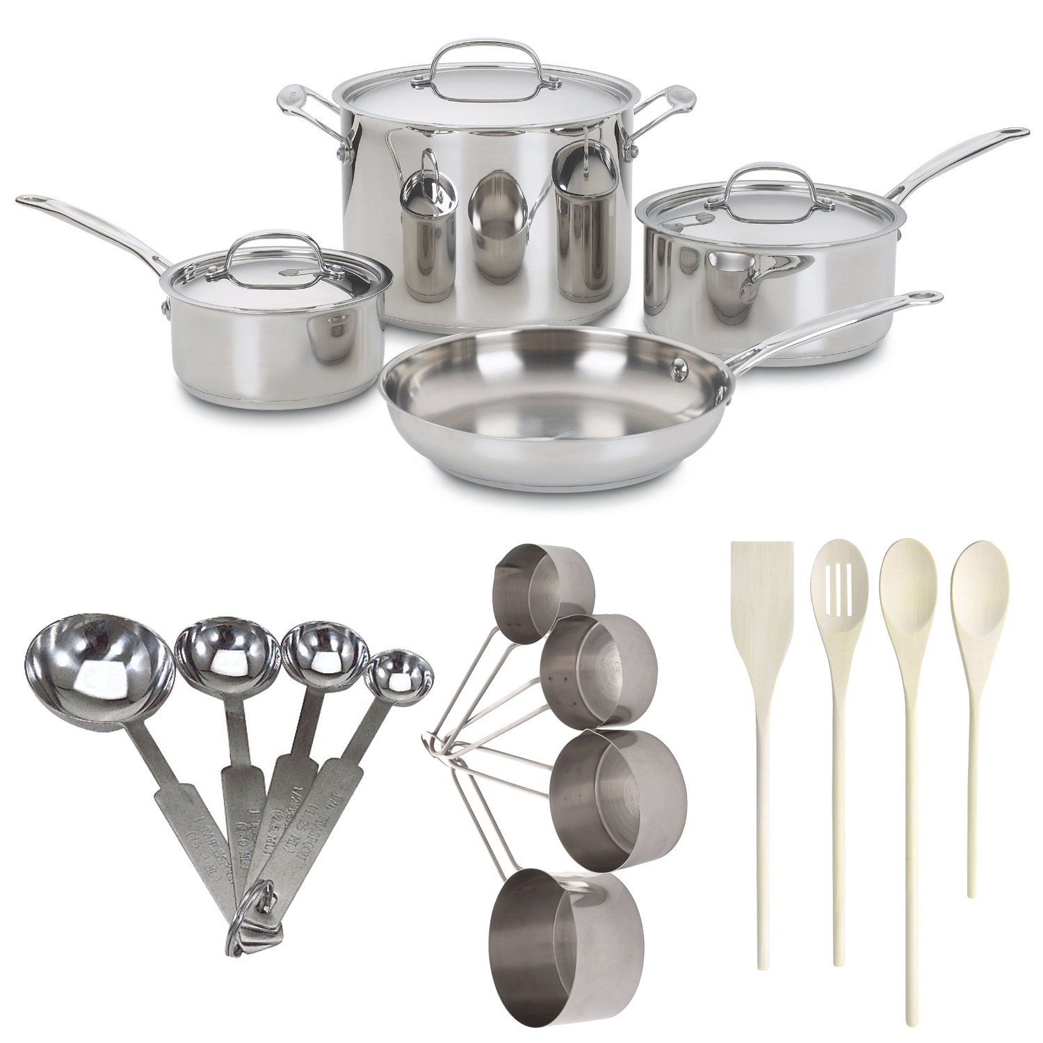 Why Use Cuisinart 777 7-Piece Chefs Classic Stainless Cookware Set Bundle with 4-pc Wooden Utensil Set, Measuring Spoons and Cups ?
