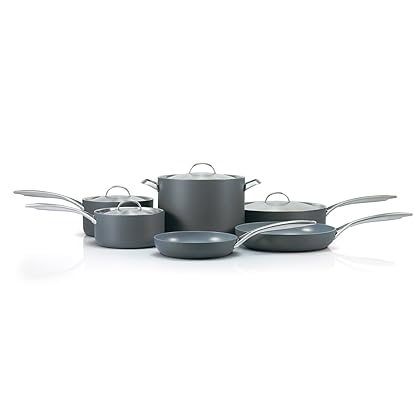 • The GreenPan Paris 10-Piece Hard Anodized Non-Stick Ceramic Cookware Set is a