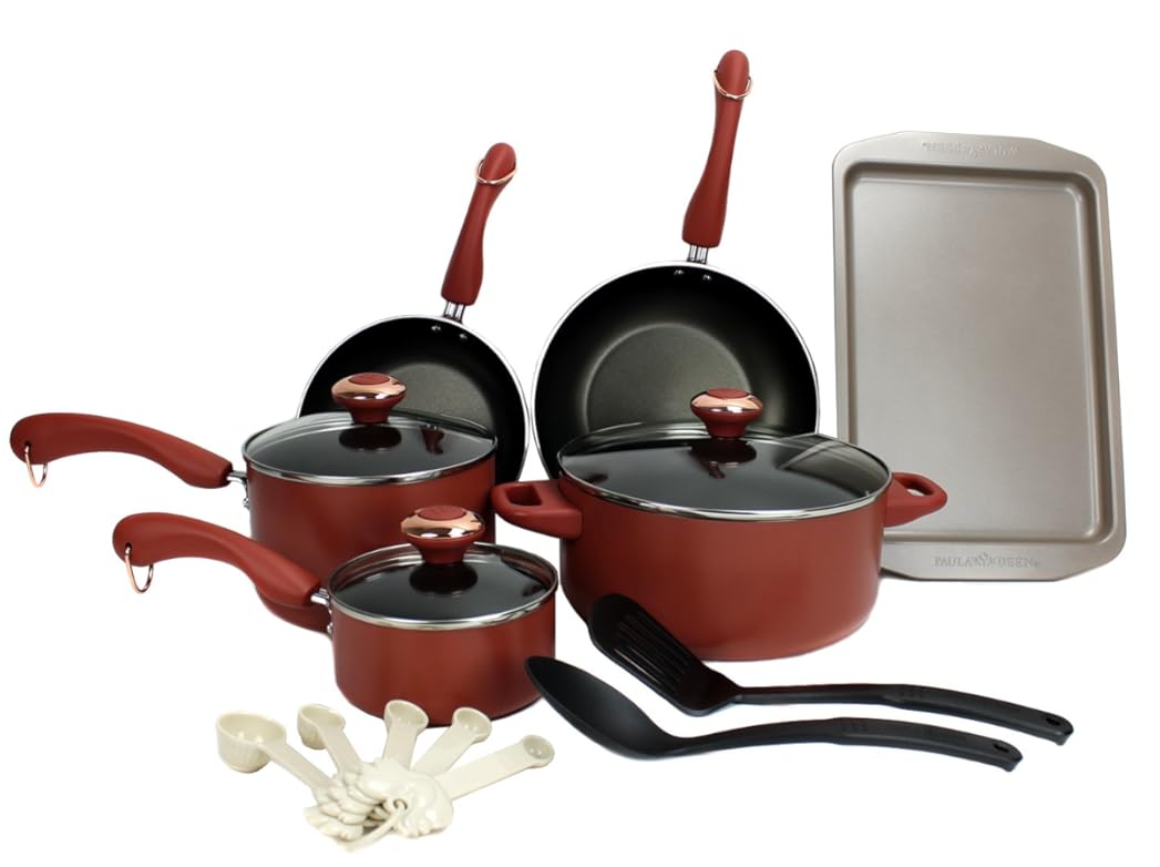 Why Use Paula Deen 15-Piece Kitchen Cookware Set Nonstick Pots Home Pans, Salmon | 21625 ?