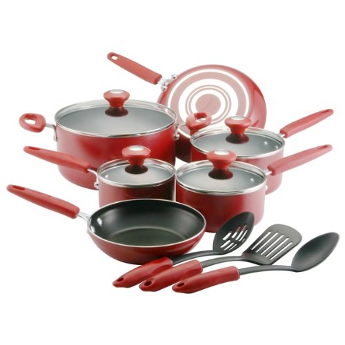 • The Silverstone Culinary Colors Aluminum Nonstick 13-Piece Cookware Set, Red is a