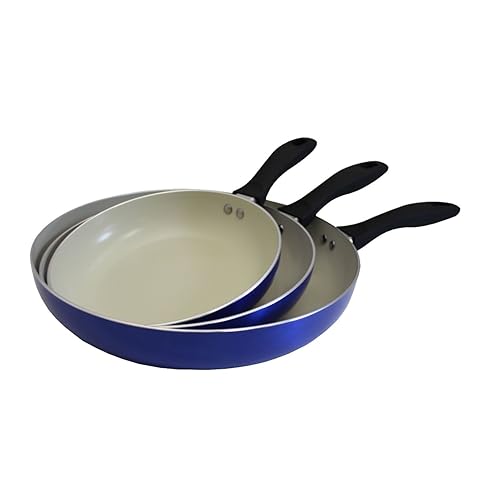 • The Concord 3pc Ceramic Non Stick Fry Pan Set Eco Friendly Frying Induction Cookware (Blue) is a
