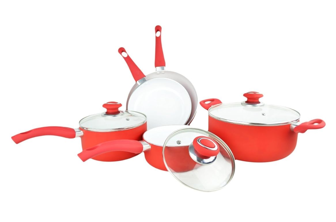 • The Soft Grip 8-Piece Eco Friendly Non-stick Ceramic Cookware Set, (Red) is a