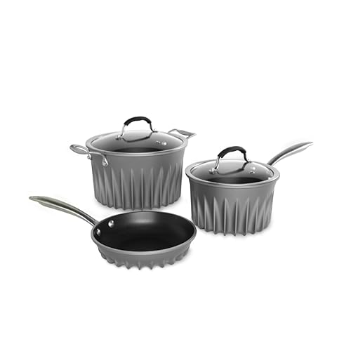- Ergonomic heat-resistant handles for a comfortable grip; vented tempered-glass lids trap in heat and moisture