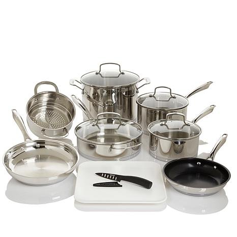 • The Cuisinart Professional Series 13-piece Stainless Steel Cookware Set is a