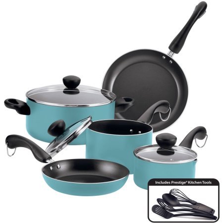 • The Farberware Easy Clean Dishwasher Safe Aluminum Nonstick 12-Piece Cookware Set , Aqua is a