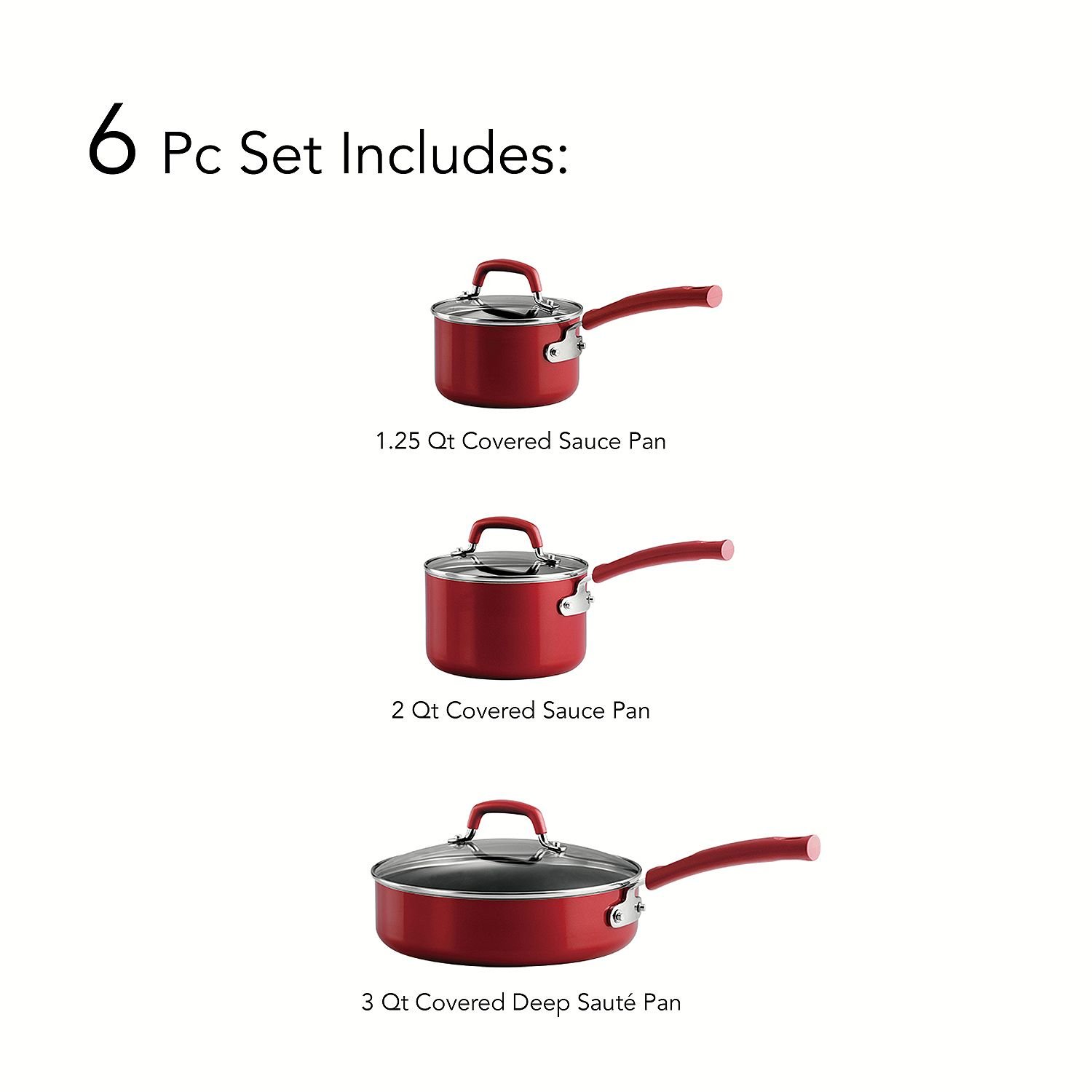 • The Tramontina 6-Piece Stackable Cookware Set -Cayenne Red is a