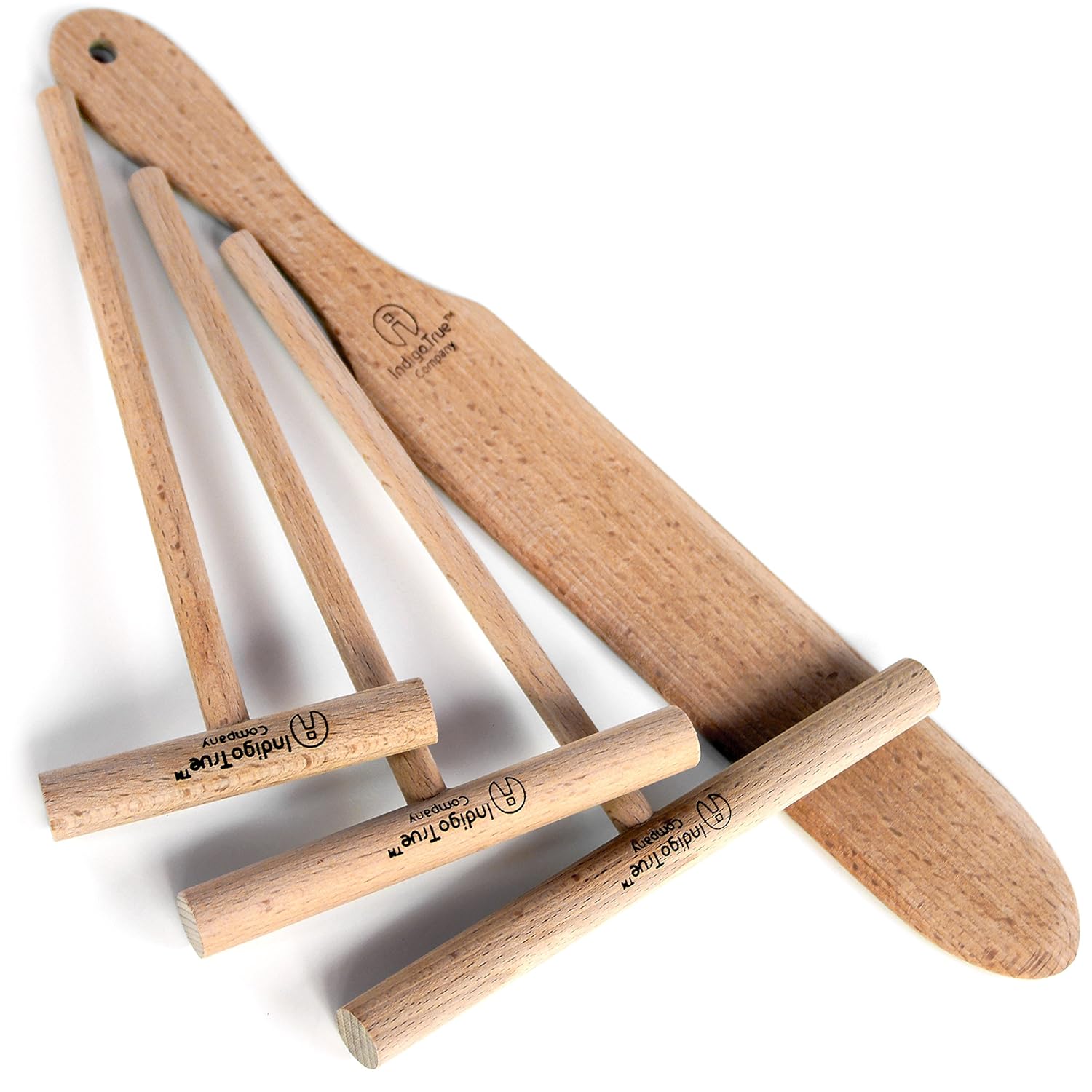 • The Crepe Making Kit 4-Piece Set (7, 5, 3.5-inch Crepe Spreaders and 14-inch Crepe Spatula) Convenient Sizes to Fit Any Crepe Pan Maker | All Natural Beechwood Construction From Indigo True Company is a