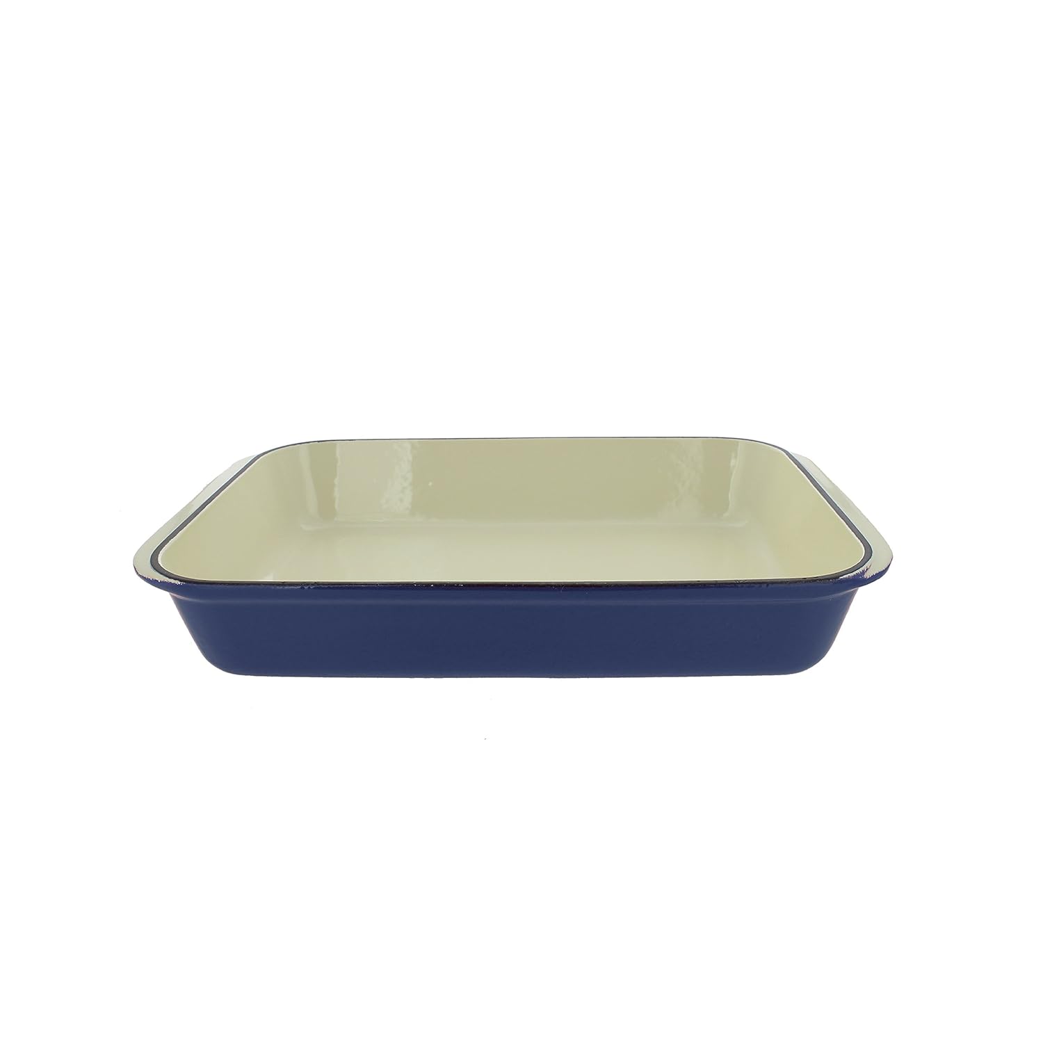 • The Chasseur 2.1-quart Blue French Enameled Cast Iron Rectangular Roaster is a