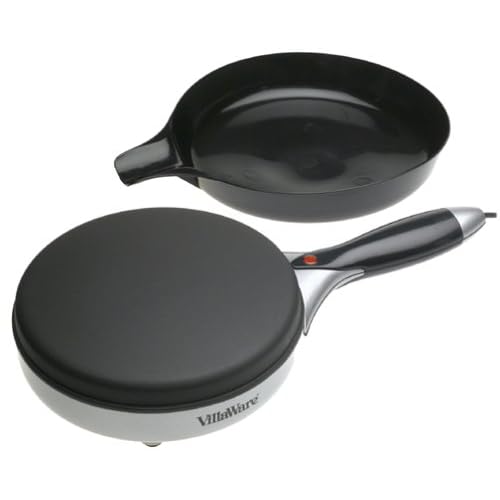 the ultimate luxury value. These Nonstick Frying Pans are made using top-rated 3003 Aluminum Alloy, used for professional grade Frying Pans. 2-Layer Nonstick interior is exceptionally durable, double quoted, and scratch resistant. This luxury cookware pan is safe for use with metal utensils. Its luxury Bakelite handle, ear, and knob create a comfort grip that resists heat and scratching.Ideal for those who love to entertain, this convenient Oster buffet server makes a wonderful addition to any kitchen collection. The unit features three separate 2-1/2-quart buffet pans that can keep up to three different dishes warm and ready to serve-anything from scrambled eggs, sausage links, and pancakes to mashed potatoes, green beans, and stuffing. To help trap in heat and moisture, three dome-shaped transparent lids come included, each with an easy-grip indentation on top for simple removal. Put the buffet server to use when hosting brunch for a bridal shower or for all those out-of-town wedding guests after the big day or when gathering with friends and family during the holidays. It's not just for special occasions, though. Use it any time of year when serving food to a crowd. For added versatility, the unit's stainless-steel base-with its 20 by 13 inch heating surface-works well as a stand-alone warming tray for appetizers, side dishes, and more. A power indicator light illuminates during operation, and to adjust the heat, simply turn the temperature-control knob from low to high as needed. When finished, the buffet pans and lids clean up easily by hand or in the dishwasher. Attractively housed in stainless steel with black stay-cool side handles, the Oster triple buffet server with warming tray carries a one-year limited warranty with warming 3 individual 2-1/2 Quart sectionsthe VillaWare V5225 Crepe Maker The Whirley Pop Stovetop Popcorn Popper brings mouth-watering theater style popcorn into your home. In just three minutes, you can make six quarts of light, flavorful popcorn - twice as much as traditional microwave popcorn! Afraid of burning your popcorn? The Whirley Pop's patented stirring mechanism prevents sticking and burning by stirring every kernel until it pops. Strategically placed steam vents allow steam to escape while popping so popcorn is always tender and crisp.Pan and lid are made out of high-quality aluminum and hardwood handle and knobs. Due to aluminum construction, this version is not induction compatible. Registration information included with every popper.VillaWare V5225 Crepe Maker is best for youProduct Description This VillaWare crepe maker bakes versatile, paper thin, 7' crepes. Die cast aluminum hot plate for even heating. Xylan non stick coating, ready light and automatic thermostat. Cool touch handle. Dipping plate included. Amazon.com Quicker and easier to use than a skillet, this 900-watt electric appliance simplifies the cooking of crepes and blintzes, making it foolproof. The 7-1/2-inch-diameter cooking surface is coated with nonstick material and is slightly convex. Dipping it into crepe batter coats it uniformly. Inverting the appliance and setting it on a counter (or dining table, for festive occasions) allows the crepe to cook, while the rubber feet protect the counter. The user then simply peels off the crepe. An automatic thermostat heats the cooking surface to the proper temperature, and a light signals when it's time to cook. The crepe maker, which features a stay-cool plastic handle, is accompanied by a plastic dishwasher-safe dipping plate to hold the batter. The crepe maker's instruction booklet contains recipes for various crepes and for blintzes. --Fred Brack