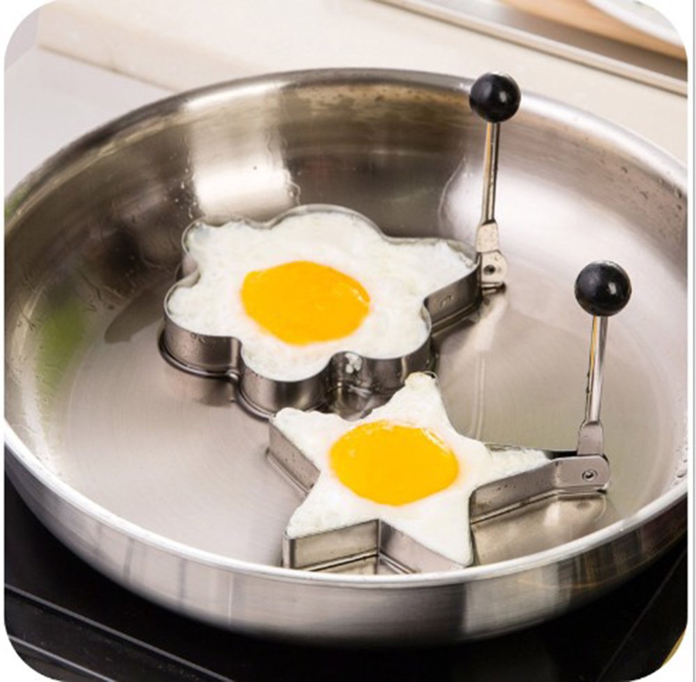 • The CXFashion Stainless Steel Fried Egg Mold Pancake Kitchen Tool Ring Cooker Maker Shaper (Shape Heart, Round, Flower, Star) (Heart Shape) is a