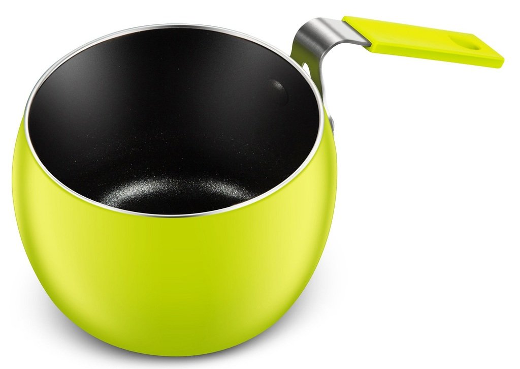• The Motase Mini 4.5-Inch 0.6-Quart Nonstick Milk and Coffee Pot Warmer with Silicone Handle Green is a