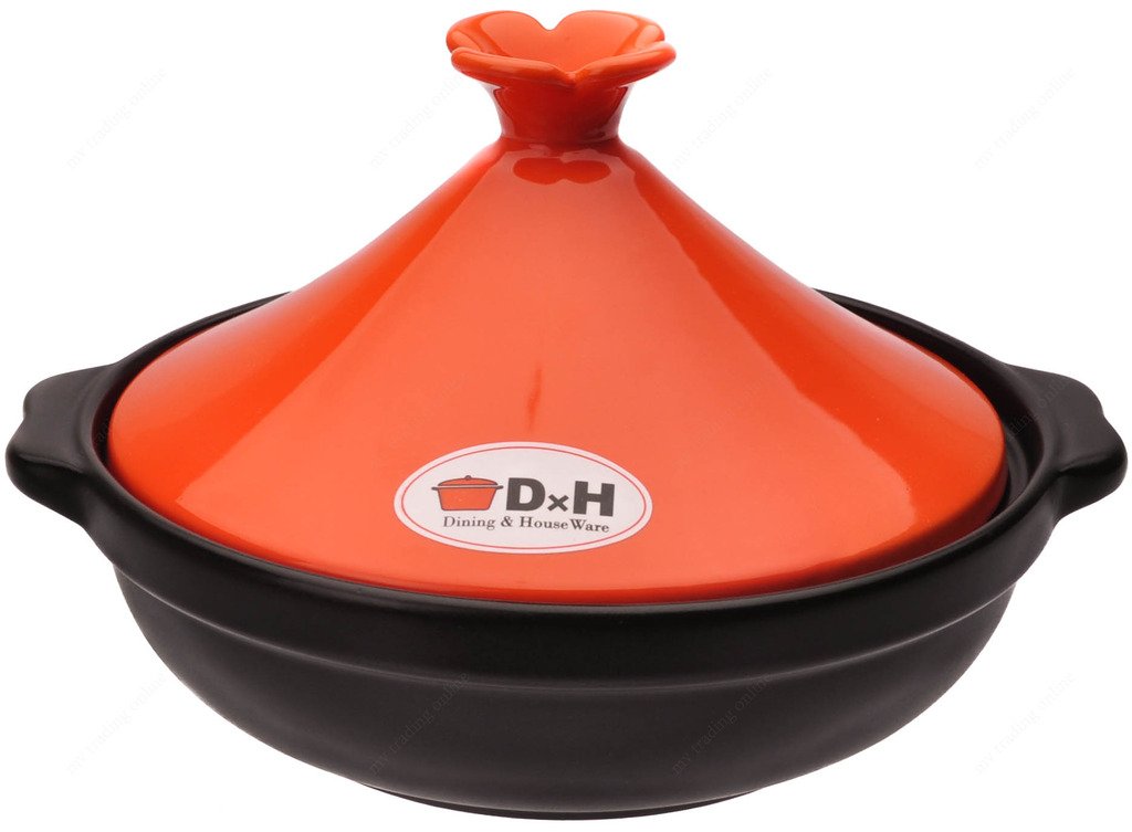 • The M.V. Trading 303005 Tagine Cooking for Cooktop or Oven with Steam Tray, 1 Quarts (1000ml), 6 Inches (15 cm), Orange Lid is a