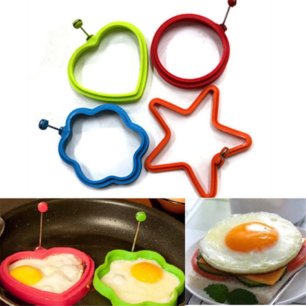 • The Prettysell Kitchen Tools Stars Heart Round Flower Shape Non-stick Silicone Fried Egg Mold Pancake Rings Cooking Egg Tools Mould.(4pcs/set) is a