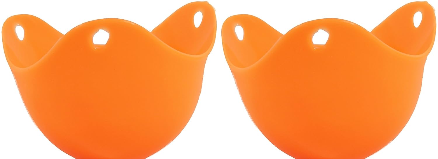 • The Reliable Home Products - Best Egg Poacher Cups - Makes a Perfect Single Poached Egg Dish in Silicone Pod Steamer cooked in a Pan - Pack of 2 Basket Holders - Color is Orange Pouch is a