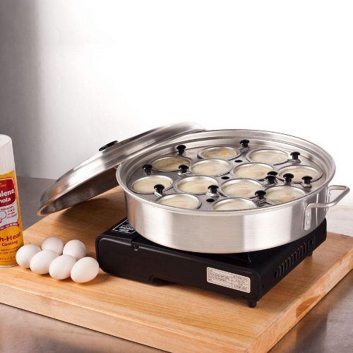 You buy Royal Industries Aluminum 12 Cup Egg Poacher with Lid " 14 1/8" x 2 1/2" with Coupon : RAO30 will be discounted 30% price Put the buffet server to use when hosting special gatherings. But,It's not just for special occasions, though. Use it any time of year when serving food to a crowd.For added versatility, the unit's stainless-steel base-with its 20 by 13 inch heating surface-works well as a stand-alone warming tray for appetizers, side dishes, and more.Attractively housed in stainless steel with black stay-cool side handles, it is a lovely addition to your table.