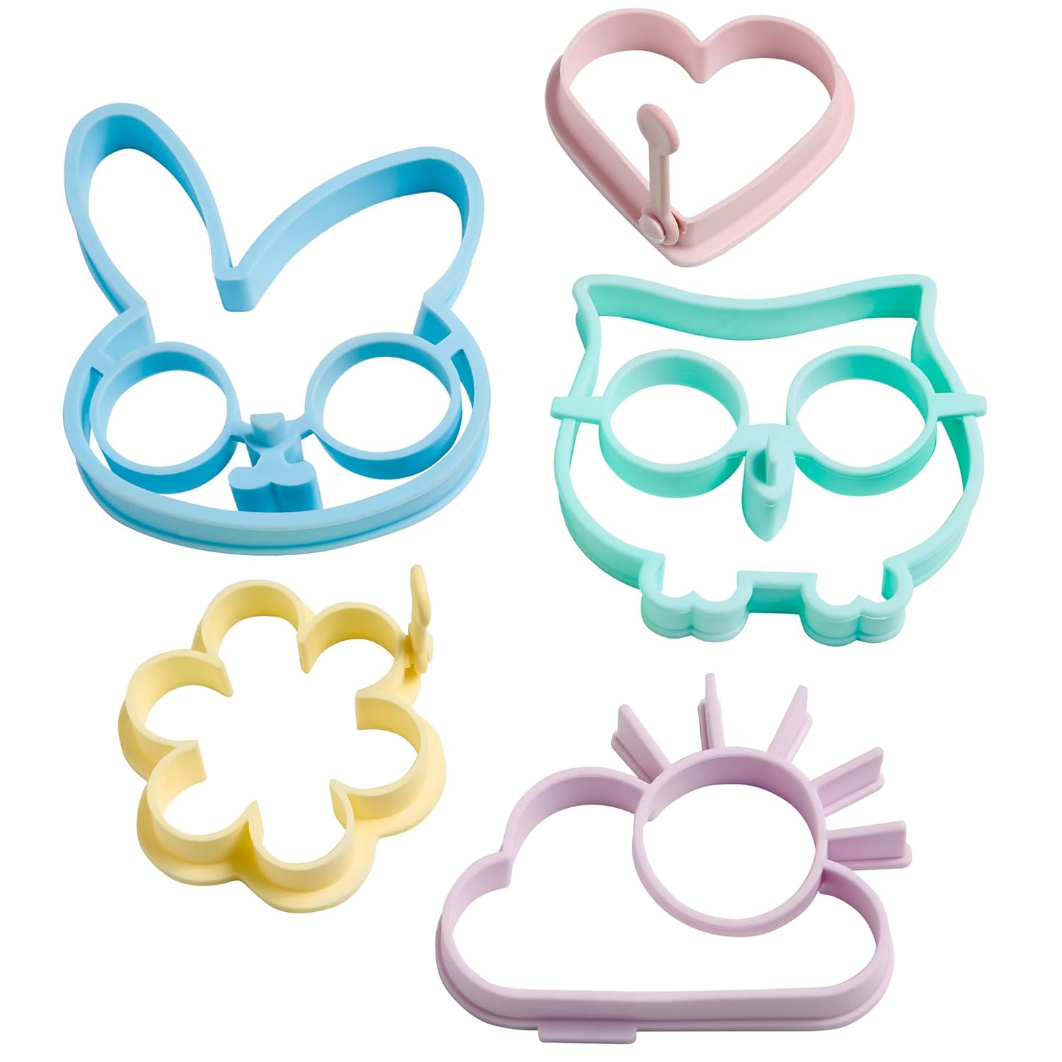 • The VonShef Silicone Egg Ring Mould Set of 5 includes Rabbit, Owl, Sun, Flower & Heart Designs is a