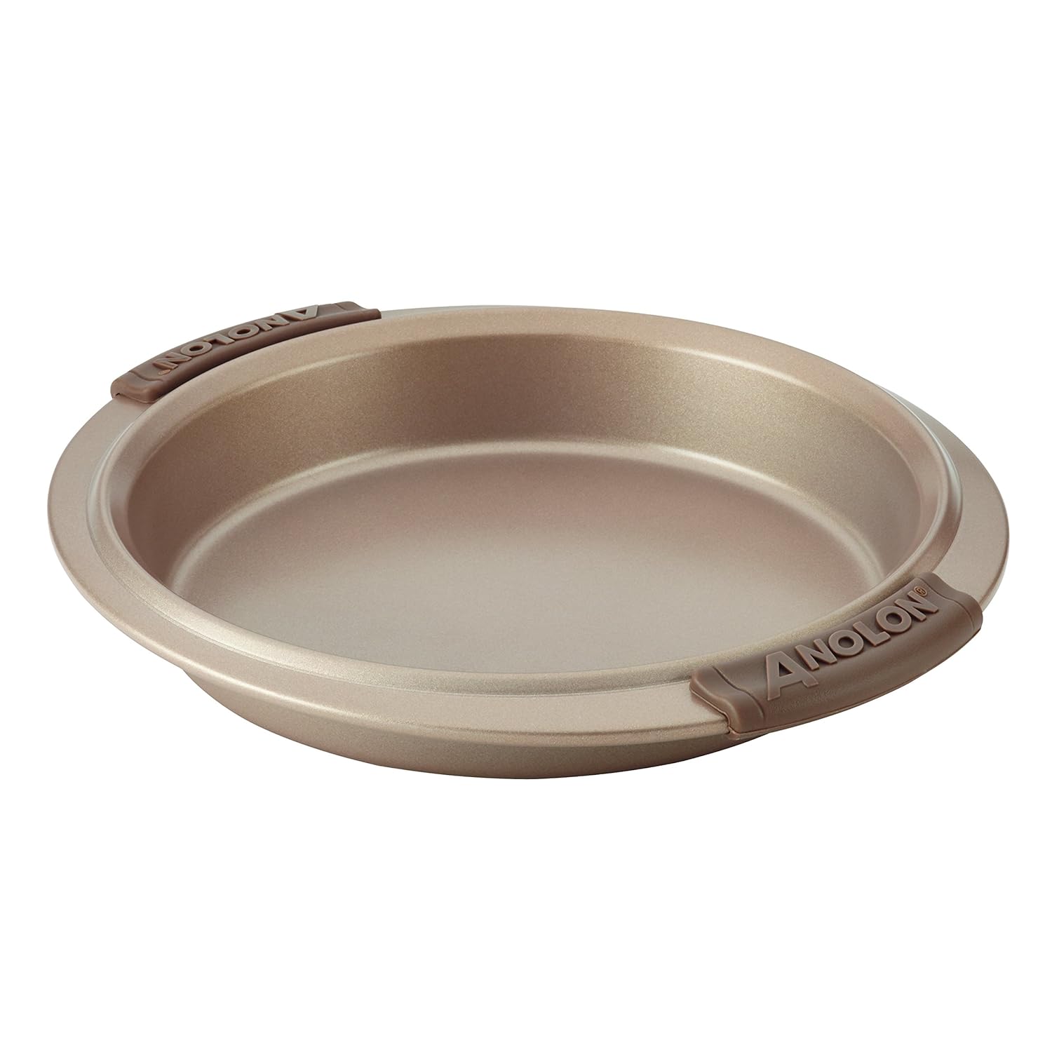 • The Anolon Advanced Bronze Nonstick Bakeware Round Cake Pan with Silicone Grips, 9", Brown is a