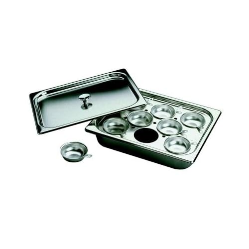 the ultimate luxury value. These Nonstick Frying Pans are made using top-rated 3003 Aluminum Alloy, used for professional grade Frying Pans. 2-Layer Nonstick interior is exceptionally durable, double quoted, and scratch resistant. This luxury cookware pan is safe for use with metal utensils. Its luxury Bakelite handle, ear, and knob create a comfort grip that resists heat and scratching.Ideal for those who love to entertain, this convenient Oster buffet server makes a wonderful addition to any kitchen collection. The unit features three separate 2-1/2-quart buffet pans that can keep up to three different dishes warm and ready to serve-anything from scrambled eggs, sausage links, and pancakes to mashed potatoes, green beans, and stuffing. To help trap in heat and moisture, three dome-shaped transparent lids come included, each with an easy-grip indentation on top for simple removal. Put the buffet server to use when hosting brunch for a bridal shower or for all those out-of-town wedding guests after the big day or when gathering with friends and family during the holidays. It's not just for special occasions, though. Use it any time of year when serving food to a crowd. For added versatility, the unit's stainless-steel base-with its 20 by 13 inch heating surface-works well as a stand-alone warming tray for appetizers, side dishes, and more. A power indicator light illuminates during operation, and to adjust the heat, simply turn the temperature-control knob from low to high as needed. When finished, the buffet pans and lids clean up easily by hand or in the dishwasher. Attractively housed in stainless steel with black stay-cool side handles, the Oster triple buffet server with warming tray carries a one-year limited warranty with warming 3 individual 2-1/2 Quart sectionsthe Vollrath 18-8 Stainless Steel One Half Size Egg Poacher/Juice Glass Holder, 22 3/32 inch Hole Diameter -- 1 each. The Whirley Pop Stovetop Popcorn Popper brings mouth-watering theater style popcorn into your home. In just three minutes, you can make six quarts of light, flavorful popcorn - twice as much as traditional microwave popcorn! Afraid of burning your popcorn? The Whirley Pop's patented stirring mechanism prevents sticking and burning by stirring every kernel until it pops. Strategically placed steam vents allow steam to escape while popping so popcorn is always tender and crisp.Pan and lid are made out of high-quality aluminum and hardwood handle and knobs. Due to aluminum construction, this version is not induction compatible. Registration information included with every popper.Vollrath 18-8 Stainless Steel One Half Size Egg Poacher/Juice Glass Holder, 22 3/32 inch Hole Diameter -- 1 each. is best for youVollrath 18-8 Stainless Steel One Half Size Egg Poacher/Juice Glass Holder, 22 3/32 inch Hole Diameter -- 1 each. 18-8 stainless steel Complete with pan, plate, cover and lift-out aluminum poaching cups Can be used to hold juice glasses on cold buffet bar