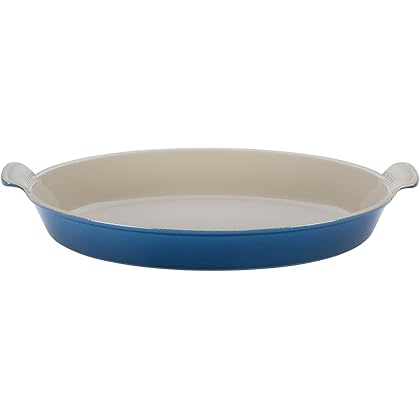 • The Le Creuset Enameled Cast-Iron 14-1/4-Inch Oval Au Gratin, Marseille is a