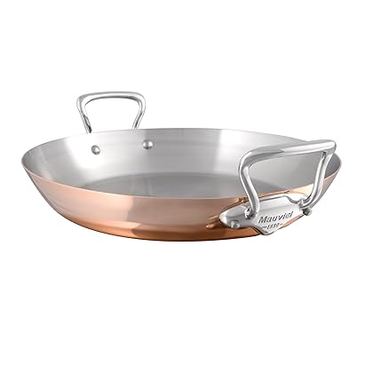 • The Mauviel Made In France M'Heritage Copper 150s 6137.35 13.7-Inch Paella Pan with Cast Stainless Steel Handle is a