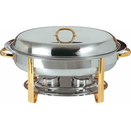 • The Update International (DC-3) 6 Qt Stainless Steel Oval Gold-Accented Chafer is a